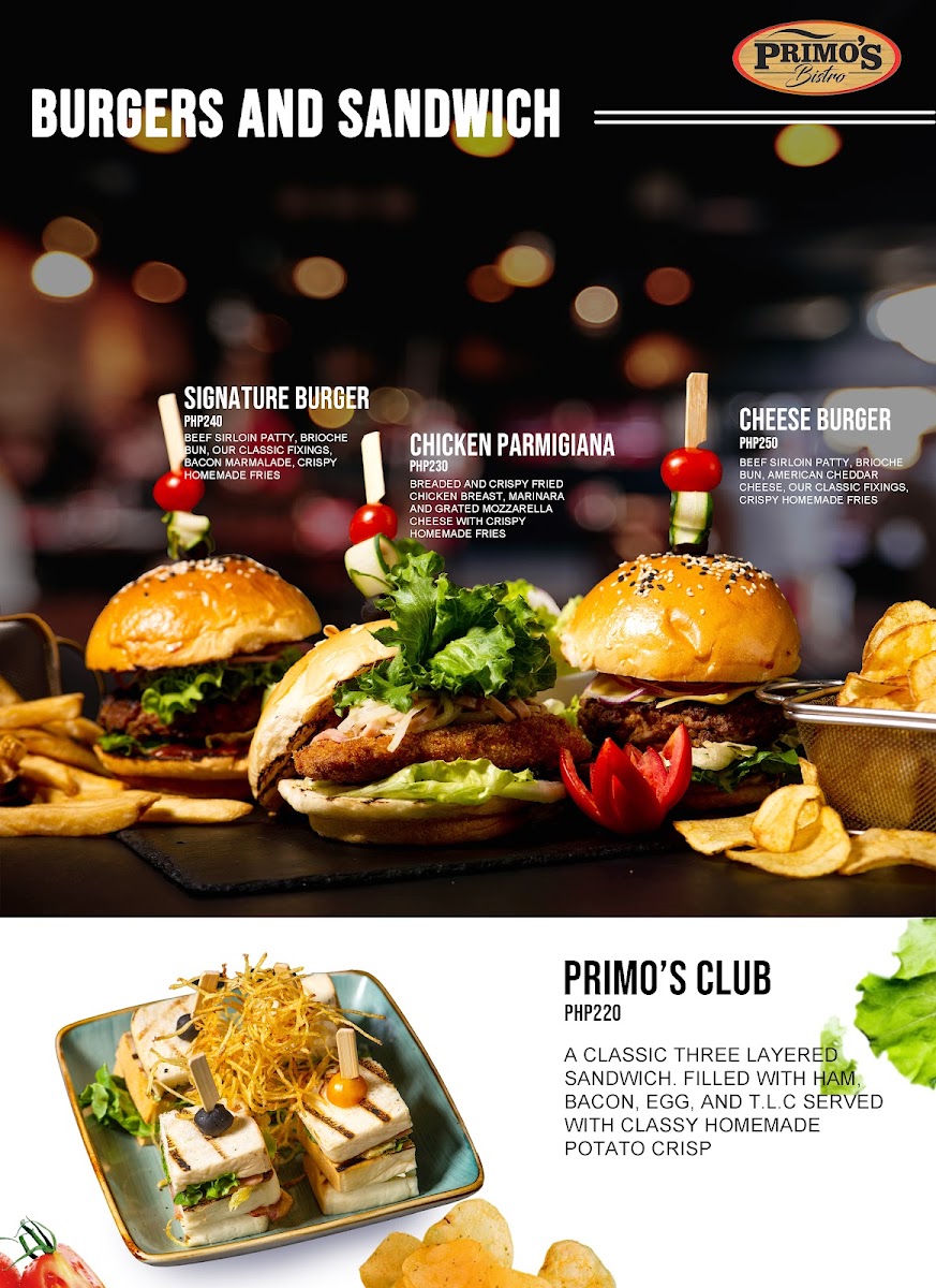 Each dish promises to be a journey for your taste buds, leaving you yearning for more. Call +63 935 194 6291 to reserve your table and embark on this flavor adventure at Primo's Bistro.